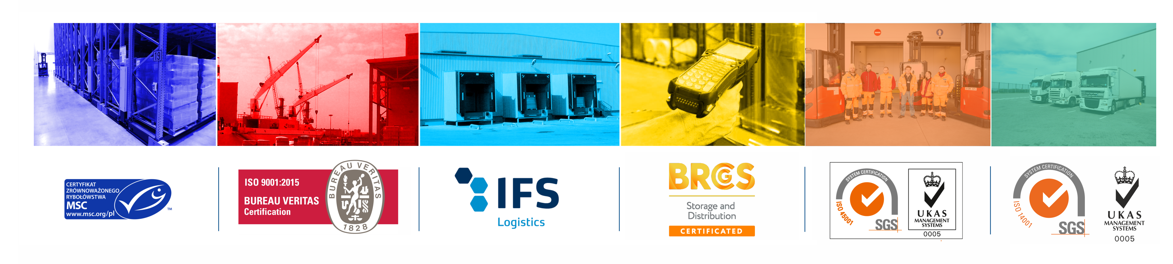 ISO 9001, IFS Logistics, ISO 14001, ISO 45001, SMETA oraz MSC/ASC Chain of Custody, co gwarantuje utrzymanie łańcucha certyfikacyjnego MSC/ASC w trakcie procesu składowania Państwa produktów.
